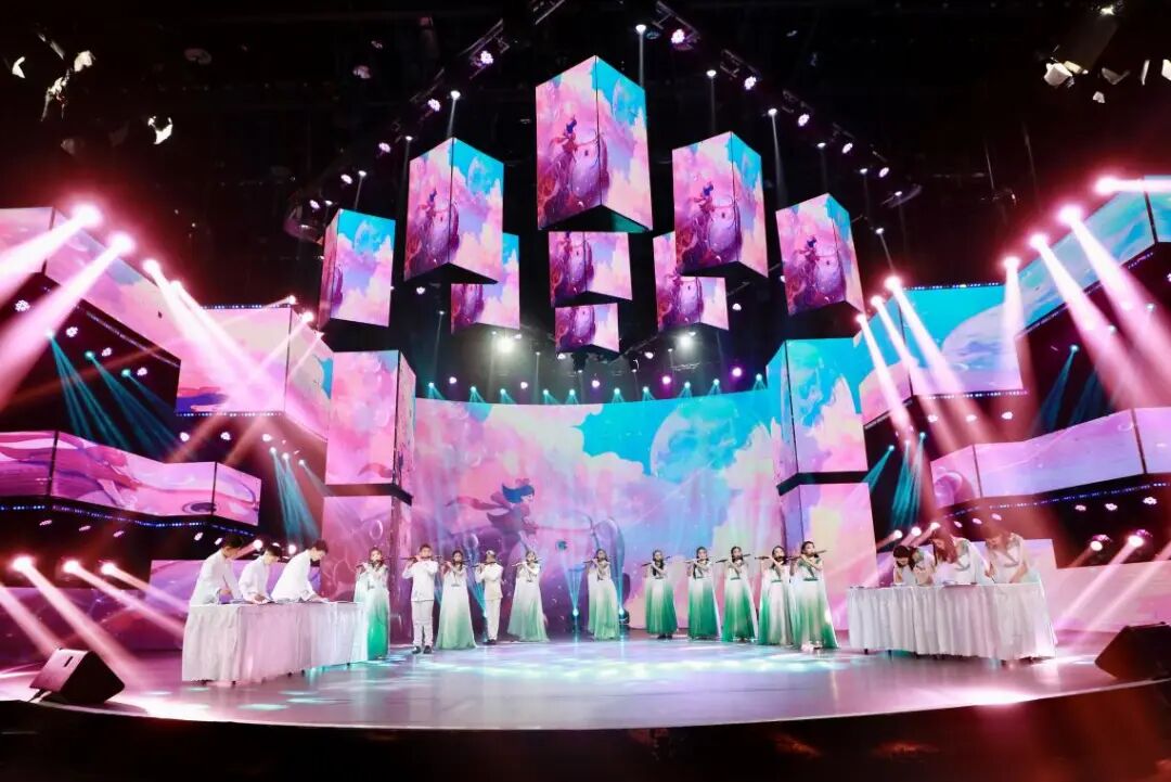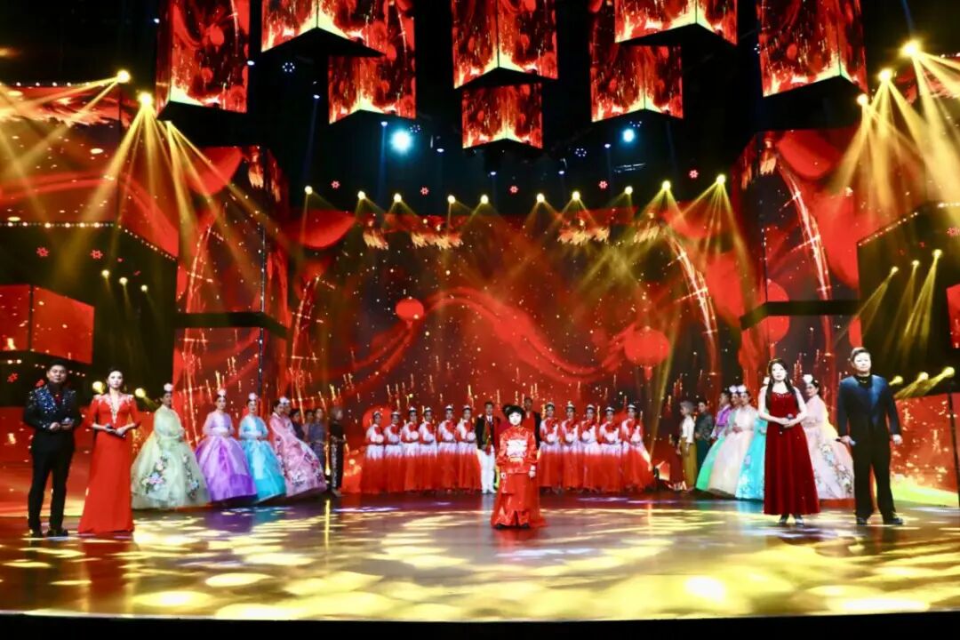 最后、参加此次春晚的演员,在一曲由朱小健作曲,刘嘉诚、朱紫一、胡德路、陈阔铭、雨潼共同演唱的《东方瑰宝》歌声中完美谢幕,今夜华灯璀璨,国服霓裳展东方神韵,观众们用热烈掌声传递深情共鸣。