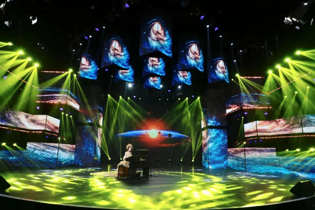 篇章在跨界创新中达到高潮。电钢琴、琵琶、竹笛、小提琴、古筝跨界合奏的《刀剑如梦》,打破乐器界限,在古典意境中注入现代节奏,展现国乐无限可能性。压轴登场的歌唱家、演奏家、作曲家晏敏敏,以双排键弹唱原创作品《太阳神》,用现代音乐语言诠释古老图腾,为国乐创新开辟了新路径。最后,艺术半璧郊亭艺术团再次登台,以器乐合奏《我的祖国》将春节晚会推向高潮,在著名笙演奏家张履福的激情指挥下,全场观众报以经久不息的掌声。
